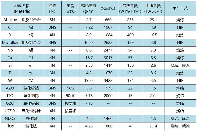 燦元在消費(fèi)平板顯示領(lǐng)域中主要提供以下靶材產(chǎn)品: